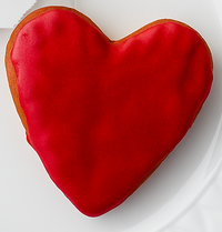 ハート型のバターサブレに、ベリーを思わせるピンクのアイシングをかけて仕上げました。