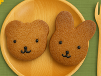 北海道産とフランス産の小麦粉、バター、アーモンドプードルを使用し、香ばしくサクサクに焼き上げた、くまさんとうさぎさん。